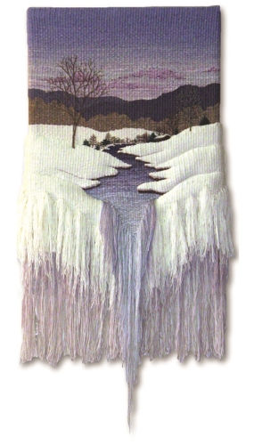 I often wonder what it was about weaving that so immediately attracted me to the medium. This attraction, or perhaps obsession, has dominated my artistic life for nearly thirty years, and I still find challenges and rewards that sustain my continued interest. Perhaps it was the sensual tactile pleasure of the yarns and the repetitive meditative process of laying down one thread upon another to create areas of color and texture. Perhaps, even more, it was the sculptural possibilities of the medium. Tapestry weaving is not the adding on of color to a surface as painting is; it is the creation of the whole cloth using threads of color. Both the illusion of depth and actual depth can be created. Tapestry cloth can be folded, draped, stuffed, or sewn to become three dimensional, and textures that rise up off the surface can be woven in. Not only can colored shapes be woven into the tapestry, but also the tapestry itself can be woven into a shape. All of this versatility and potential in a medium allows for expressive possiblities that I have only begun to explore. Most of my work is autobiographical. It all flows out of the places, people, and ideas that make up my life experience and who I am. The medium, in this case woven tapestry, is also a large part of my message. I find great satisfaction not only in learning and mastering traditional tapestry techniques but in improvising and even inventing techniques. I want to push the medium beyond its traditional form.